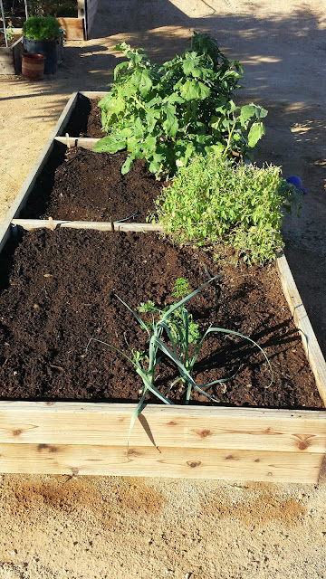 | Second garden box Existing bell peppers and Thai basil |